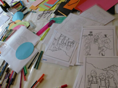 De hele dag is er de mogelijkheid om te knutselen voor de kinderen. Er zijn diverse materialen aanwezig om bijvoorbeeld een talking stick te maken, een totempaal of een dromenvanger!